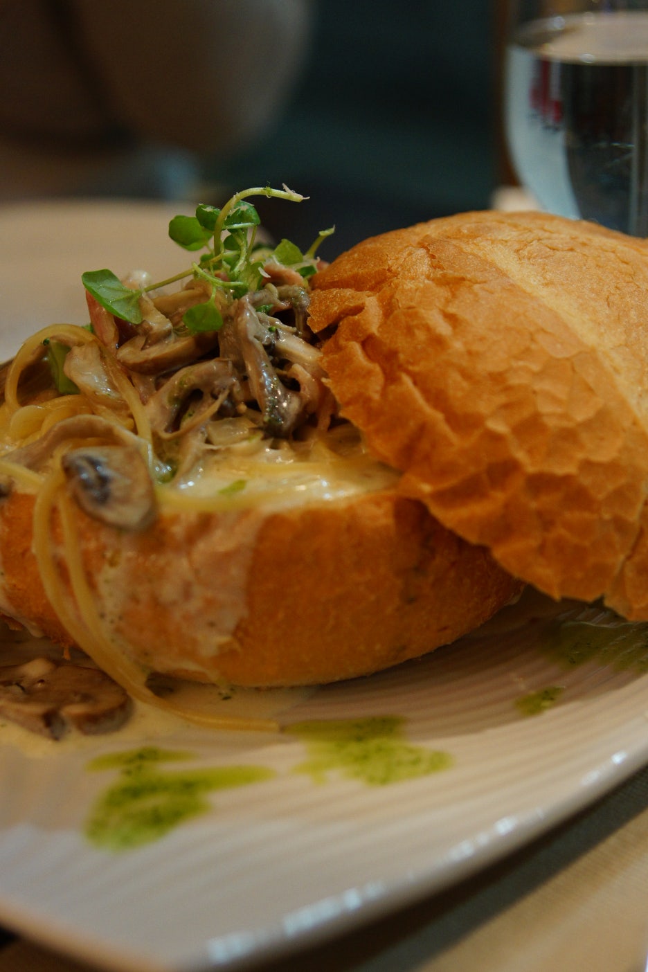 겉이 바삭한 빵 안에 크림소스와 향긋한 버섯으로 이루어진 파스타가 들어있고,